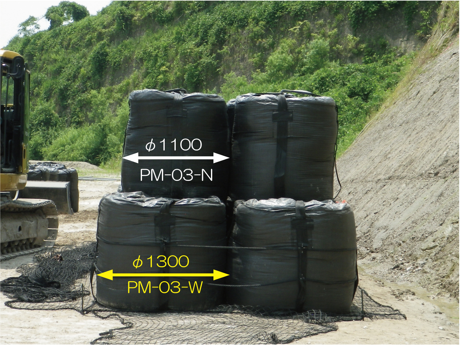 大型土のうのサイズはΦ1100、Φ1300の2種類です。