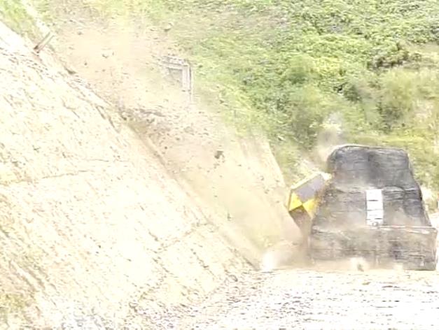 【崩壊土砂防護性能】実斜面を用いた実規模実証実験による性能照査(土砂流下式実験)